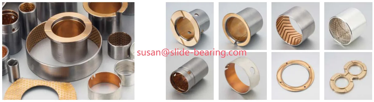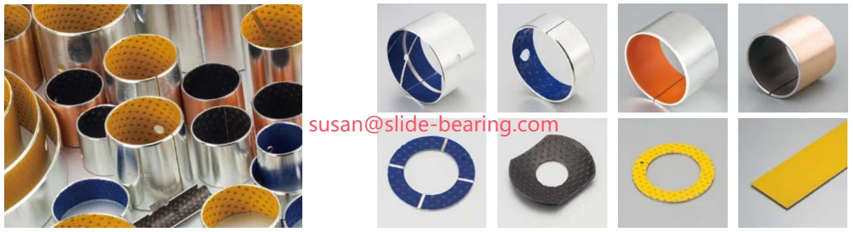 Metal-polymer marginal lubricating composite materials consist of metal backing sintered porous bronze with POM or PEEK polymer as working layer. Steel backing provides exceptionally high load carrying capacity, excellent heat dissipation. Sintered bronze powder provides thermal conductivity away from the bearing surface, also serves as a reservoir for the resin mixture. And the POM or PEEK polymer layer provides high wear resistance and low friction even with only minute volume of lubricant are supplied, this bearing surface carries a pattern of circular indents which should be filled with grease on assembly of the bearing.