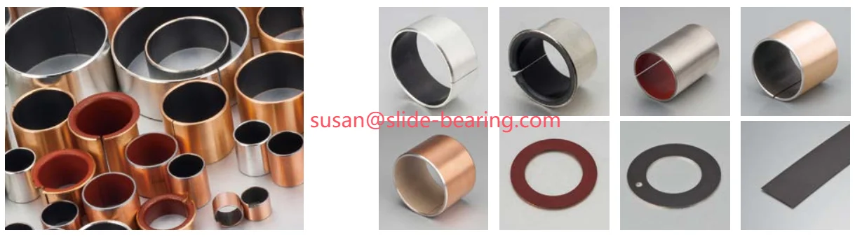 Metal-polymer self-lubricating composite materials consist of metal backing sintered porous bronze with PTFE polymer as working layer. The metal backing provides mechanical strength, while the bronze sinter layer provides a strong mechanical bonding between the backing and the bearing lining, the PTFE polymer offers exceptional low friction even under dry condition and the thermoplastic polymer is generally designed to operate with marginal lubrication. The construction promotes dimensional stability and improves the thermal conductivity. This material meets the demanding criteria for long life and trouble-free performance with or without lubrication.